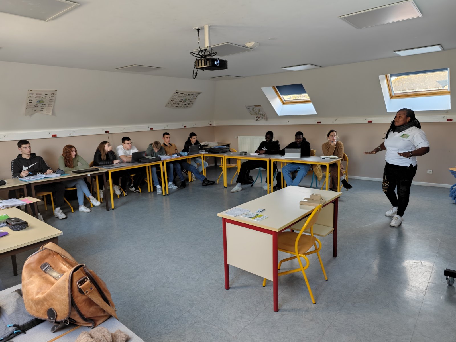 La mission s’est articulée autour de différentes rencontres avec des OPA du département (JA, commission des agricultrices), sur des fermes maraîchères, d’élevage et de transformation, mais également au sein d’établissements d’enseignement agricole. D’abord au CFPPA de Charolles, avec la visite de l’exploitation et de l’établissement, et ensuite avec une intervention auprès d’une classe de BTS ACSE 1 du lycée de Fontaines. Cette dernière a été l’occasion pour Kafui de présenter son organisation aux jeunes en formation et de leur parler des possibilités de stage.